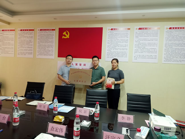 會(huì)議在莊嚴(yán)的國(guó)歌聲中開始,首先興園社區(qū)權(quán)新同志宣讀了關(guān)于同意成立中共安徽世綠環(huán)??萍加邢薰局Р课瘑T會(huì)的批復(fù)文件,并由社區(qū)何軍同志為新成立的支部頒發(fā)黨牌并贈(zèng)送了黨報(bào)黨刊。隨后新成立的黨支部進(jìn)行了第一次全體黨員大員及支部黨委書記的選舉。經(jīng)過不記名投票,查宏偉同志以全票當(dāng)選為支部委員會(huì)黨委書記。
